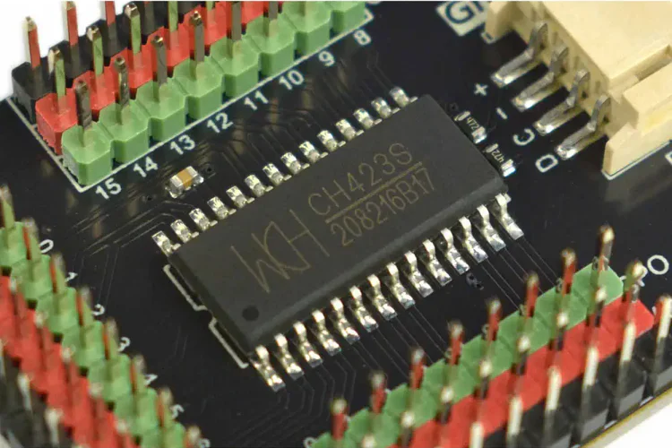 The new ch423 component provides support for the CH423 I/O expander with 24 GPIO pins: 8 bidirectional I/O pins and 16 output-only pins (#13079). Based on the CH422G driver architecture, it communicates over I2C and can be used with standard GPIO binary sensors, switches, and outputs.